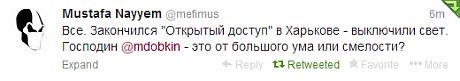Как сообщил дежурный Центральной РЭС городских электросетей «Харьковоблэнерго», (обслуживающей Киевский район), Вячеслав Мармаза, как раз во время показа фильма с 18.40 до 21.40 произошло повреждение подстанции. Понадобилось три часа, чтобы починить неисправность в нескольких домах на улице Чернышевской. Ровно столько времени, сколько запланировали организаторы на проведение мероприятия. Кстати, понимая, что будут провокации, в спешном порядке удалось подогнать электромобиль и через ноутбук вывести на большой экран изображение. В темноте под свет фонарика обсуждение в Харькове все-таки состоялось. Мустафа Найем и Татьяна Даниленко ответили на все вопросы, интересовавшие зрителей, которые, к слову, заполнили зал битком.