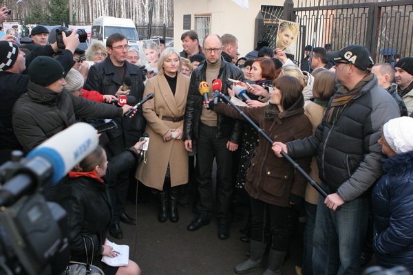 К лидеру украинской оппозиции Юлии Тимошенко, которая находится на лечении в ЦКБ №5 г. Харькова, приехали ее соратники — глава парламентской фракции "Батькивщина" Арсений Яценюк, народный депутат Ирина Луценко и лидер общественной организации "Третья республика" Юрий Луценко.