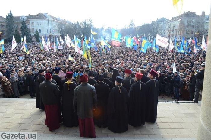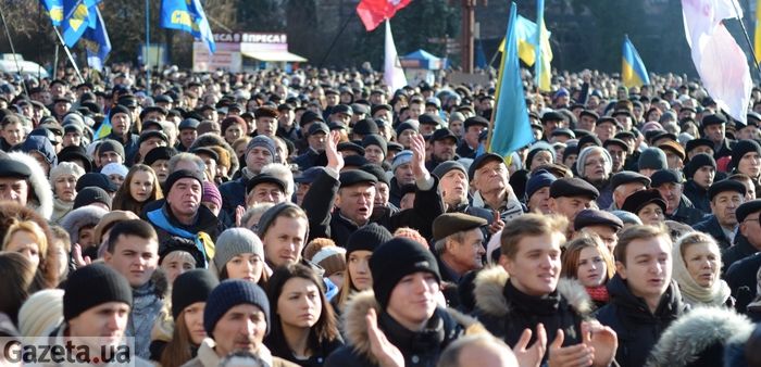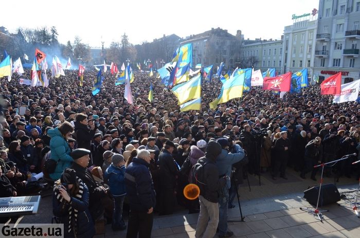 Почти 15 тысяч жителей Тернополя собралось сегодня на Театральной площади, протестуя против произвола властей.
