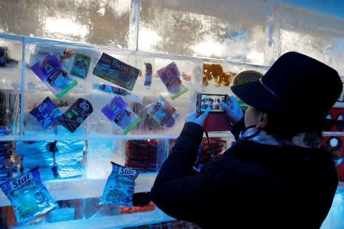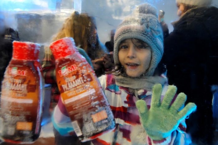 По словам организаторов, на создание необычного магазина площадью 150 квадратных метров потребовалось около 80 тонн прозрачного льда.