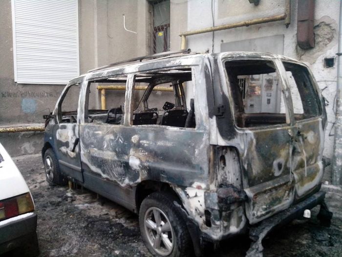 Сегодня около двух часов ночи на заднем дворе дома Саламандры (ул.Сумская, 17) неизвестные сожгли арендованный харьковским Евромайданом микроавтобус «Мерседес Вито». На нем ежедневно на мирные акции привозили аппаратуру и транспортировали теплые вещи, которые харьковчане собирают для Киева. По словам организаторов микроавтобус не содержал никаких познавательных знаков Евромайдана.