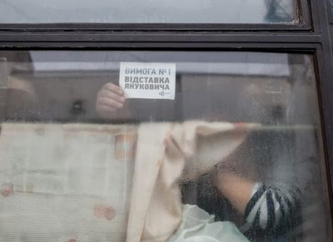 Однако, самом интересным оказалось то, что люди прилепили к стеклам вагонов стикеры с надписью «Вимога №1 – відставка Януковича!»