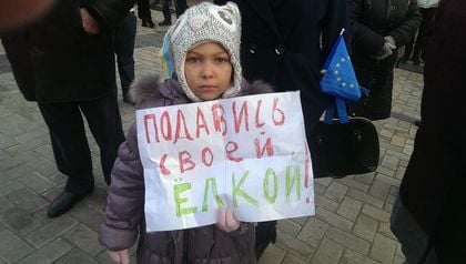 Маленькая девочка, которая держала плакат «Подавись своей елкой» на Михайловской площади Киева, после разгона демонстрантов на Майдане Незалежности в ночь на 30 ноября «Беркутом», оказалась луганчанкой.