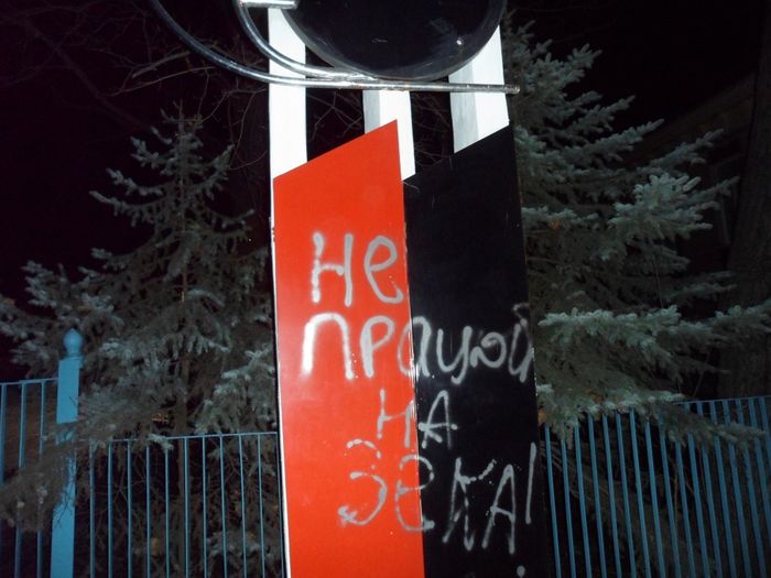 В начале декабря на улицах Тореза появились надписи "Зека на нари", "Банду геть", "Зека в дупу", "Не працюй на зека".