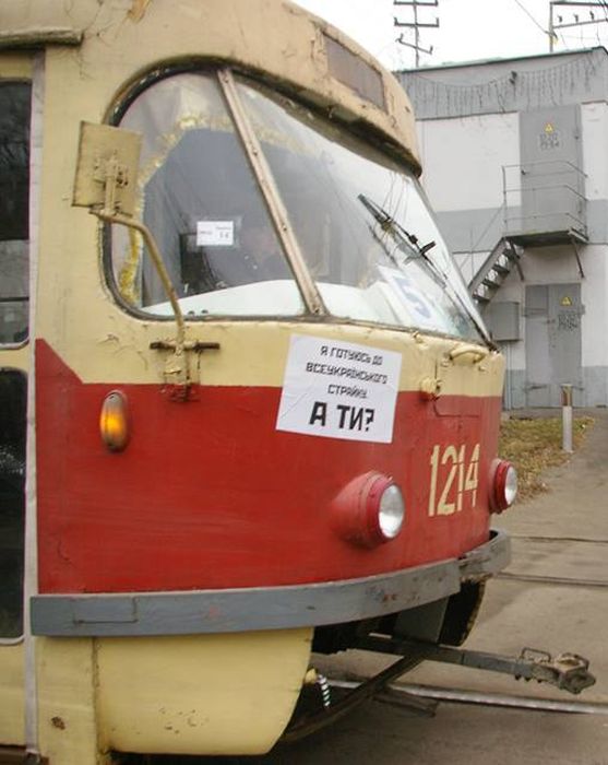 Транспортники Харькова начали подготовку к всеукраинской забастовке. Несмотря на давление со стороны руководства транспортных депо и ГАИ, водители выезжают на маршруты с плакатами, в которых возмущаются социальной политикой правительства, и призывают граждан принять участие в забастовке.