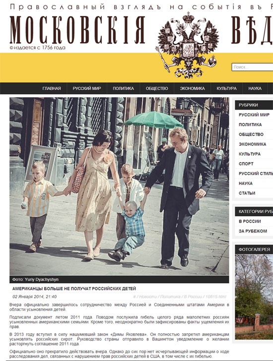 Напомним, сайт российской газеты «Московские Ведомости» проиллюстрировал статью «Американцы больше не получат русских детей» фотографией мэра Львова Андрея Садового с семьей.