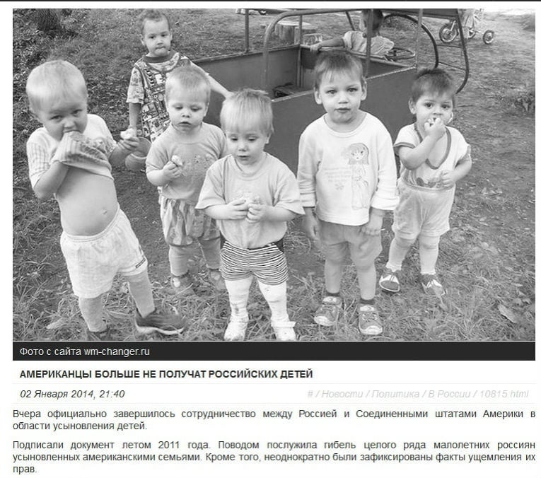 В статье речь идет о том, что 1 января официально завершилось сотрудничество между Россией и США в области усыновления детей. Как пишет ZAXID.NET, в поисках фото для иллюстрации российские журналисты почему-то остановились именно на фото львовского градоначальника. Интересно, что эта фотография размещена на странице Садового в Википедии.