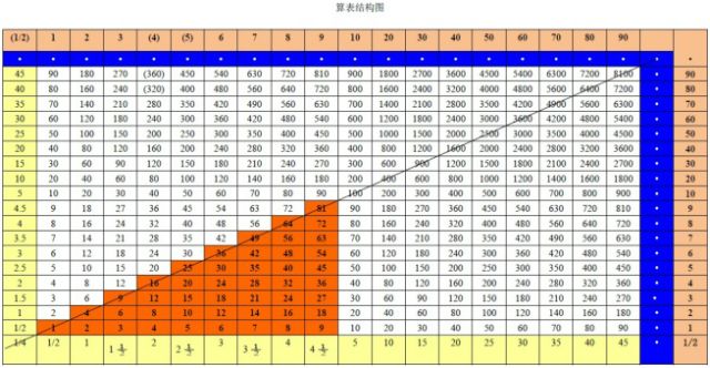 Как и в привычной нам современной таблице умножения, записи на пересечении строки и колонки в матрице содержат результаты умножения соответствующих цифр. Также таблица может помочь пользователю умножить любое целое или половину целого числа от 0,5 до 99,5.