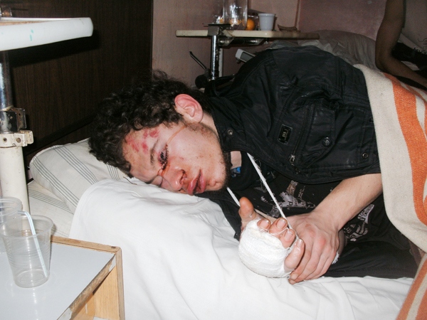 — Как мы обрадовались, что вышли к людям! — вспоминает Сергей. — Наконец-то нам помогут! Но не тут-то было. Мы стучались во все дома и калитки, просили помочь, вызвать «скорую», говорили, что нас избили. Но никто не открыл. Увидев нас, окровавленных, местные жители спешили побыстрее закрыть дверь. Только один прохожий — мужчина, который гулял на улице с женой и детьми, — сжалился: показал, где находится медицинский пункт. Мы из последних сил доковыляли туда и в изнеможении просто упали на пороге. Там нас осмотрели и вызвали «скорую» из Киева. Так мы оказались здесь. Кириллу, конечно, досталось больше. Но у меня тоже ломит и руку, и спину. А к голеням вообще не прикоснешься — врачи говорят, что от ударов мышцы отошли от костей. Но, как только немножко поправлюсь, сразу же снова пойду на Майдан. Теперь я как никогда уверен, что нужно добиваться правды — иначе любого человека, как меня, нелюди смогут схватить на улице и безнаказанно избить до полусмерти.