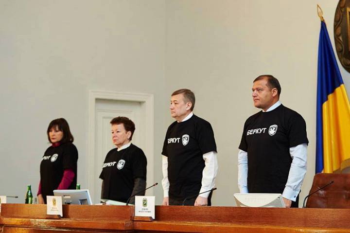 Напомним, накануне фракция Партии регионов Харьковского областного совета пришли на заседание сессии сегодня в темных футболках с надписью «Беркут» на груди. Таким образом депутаты облсовета решили поддержать сотрудников спецподраздетения.