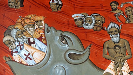 В монастыре Острог рядом с изображением Иуды, предавшего Христа, нарисованы Владимир Ленин, Адольф Гитлер и Иосип Броз Тито.