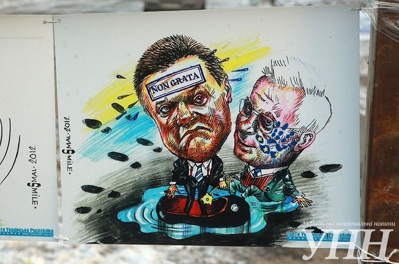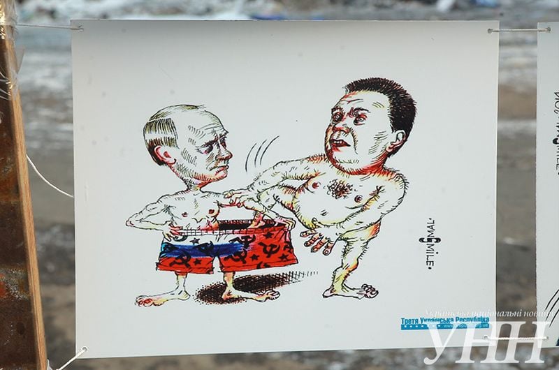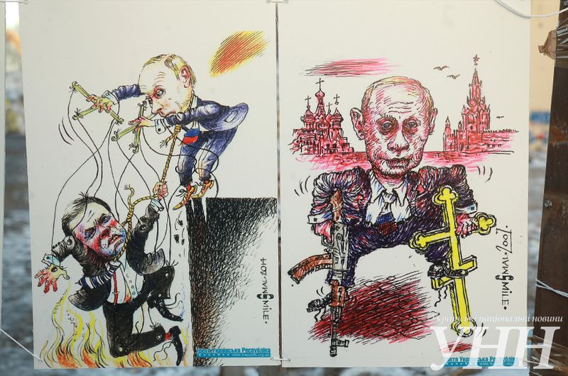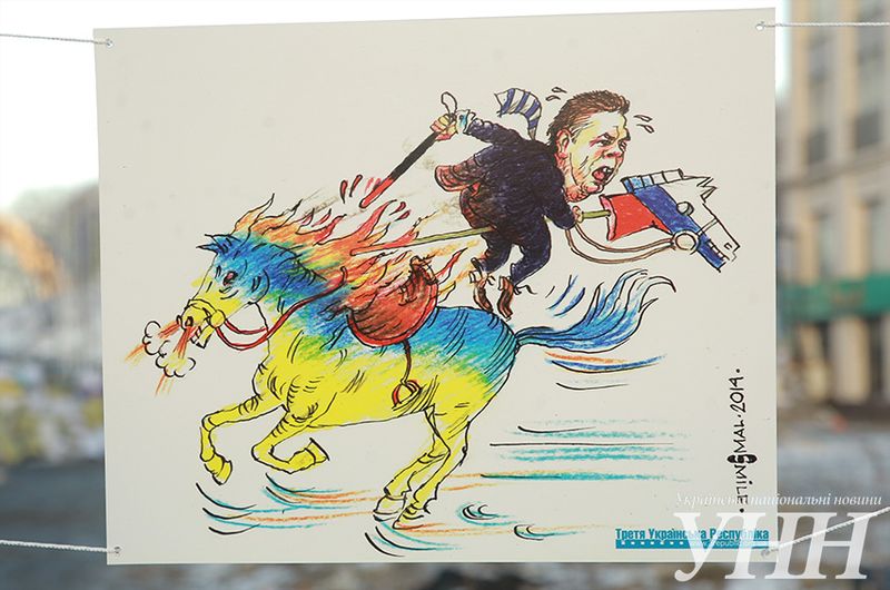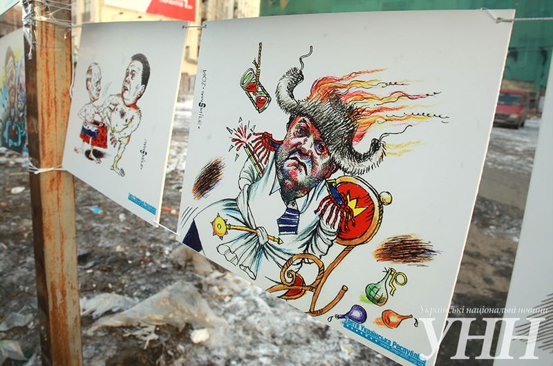 В Киеве на Майдане Незалежности открылась выставка работ украинского политического карикатуриста Олега Смаля, передает УНН.