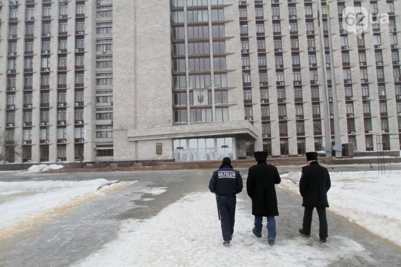 Периодически они заходят погреться в помещение администрации, режим безопасности которой тоже ужесточен - теперь даже аккредитованным представителям СМИ без объяснений цели визита и сопровождения сотрудника пресс-службы ОГА попасть в администрацию не удастся.