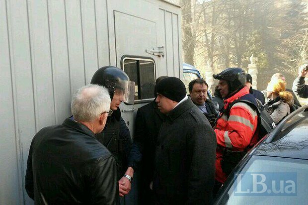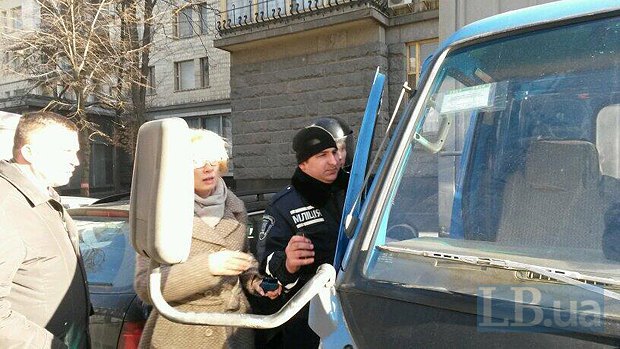 Депутаты от "Батькивщины" блокируют автозак, пытаясь освободить активистов. К Денисовой милиционеры даже применили силу.
