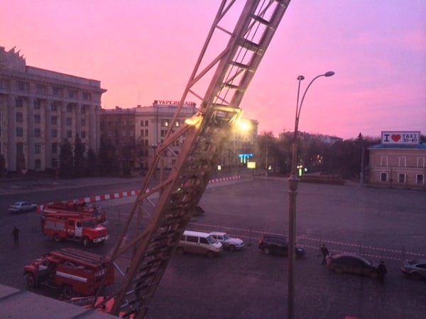 В Харькове в здании на пл. Свободы,8/ул. Сумской, 39 большое скопление пожарных, здание заливают из брандсбойтов, оно обесточено.
