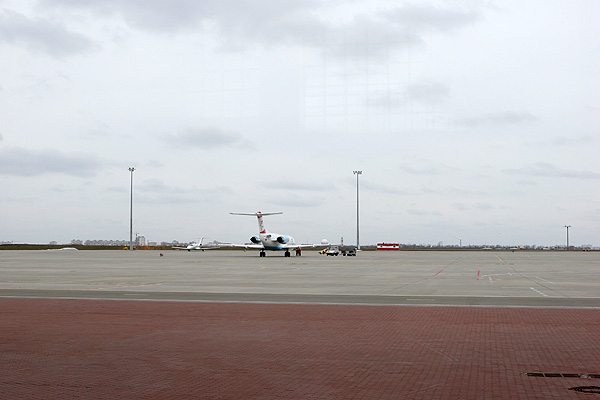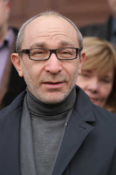 Мэра Харькова Геннадия Кернеса встречают в харьковском аэропорту около полусотни журналистов.