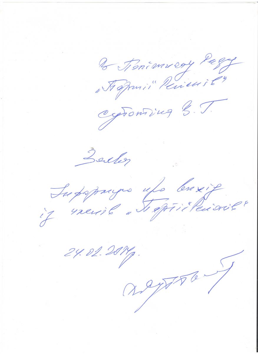 Заявление о выходе из Партии регионов опубликовано на сайте «Турбоатома».