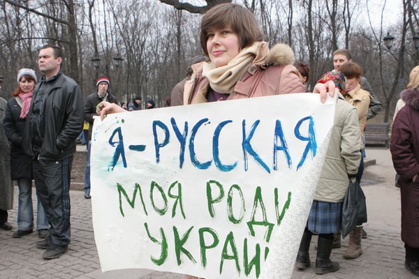У памятника Тарасу Шевченко в Харькове, где традиционно в течении трех месяцев проходил Евромайдан, сегодня прошла акция за территориальную целостность Украины и против российского вторжения.