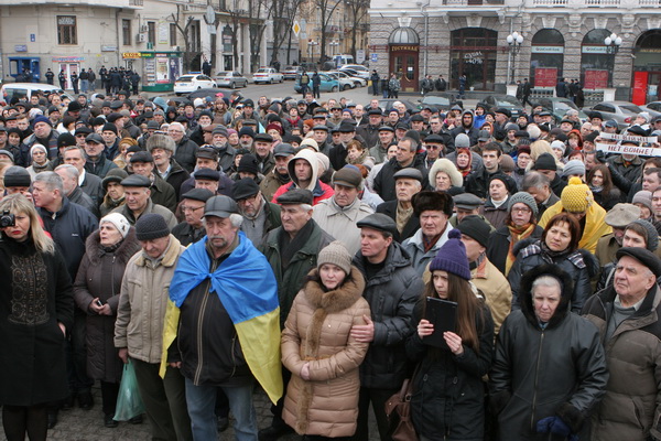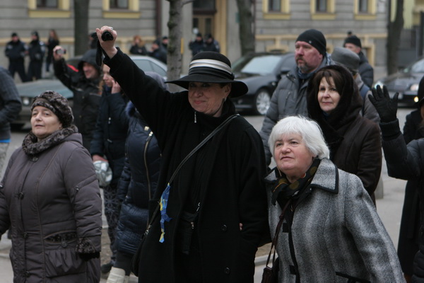 Во время движения колонны по площади Свободы из проезжающего мимо белого микроавтобуса без номеров с российским флагом неизвестные начали показывать непристойные жесты участникам акции, оскорблять, пытаясь спровоцировать конфликт, однако, евромайдановцы не поддались на провокацию и колонна последовала дальше.