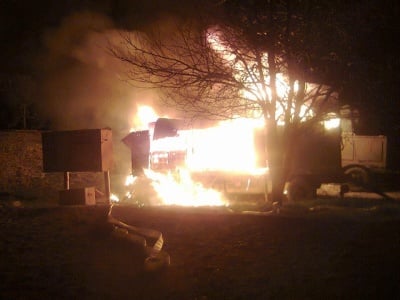 В опасной близости от подожженной электроустановки располагаются склады горюче-смазочных материалов.