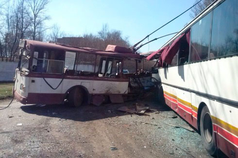 По информации Госслужбы по вопросам ЧС, вчера в 13 час. 23 мин. в г. Харцызск (Донецкая область) произошло столкновение троллейбуса с пассажирским автобусом "Setra".