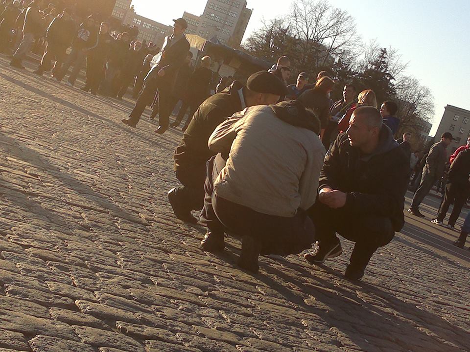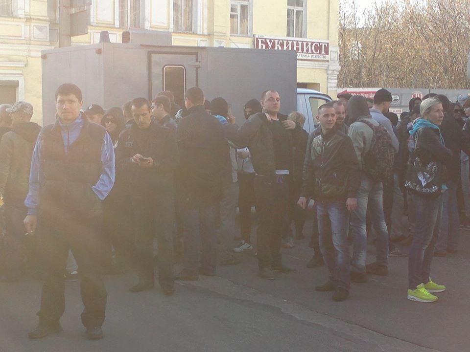 "Участники пророссийского митинга снова собираются на площади (Свободы - ред.). Со сцены звучит призыв обзванивать всех знакомых, собрать как можно больше людей. "Нужно показать, что мы с Донецком и Луганском" - кричат в мегафон. На сборы дают час. Потом - "покажем хунте, кто здесь хозяин", написал журналист в Facebook.