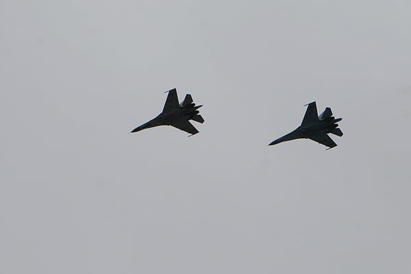 Над площадью Свободы в Харькове летают истребители.