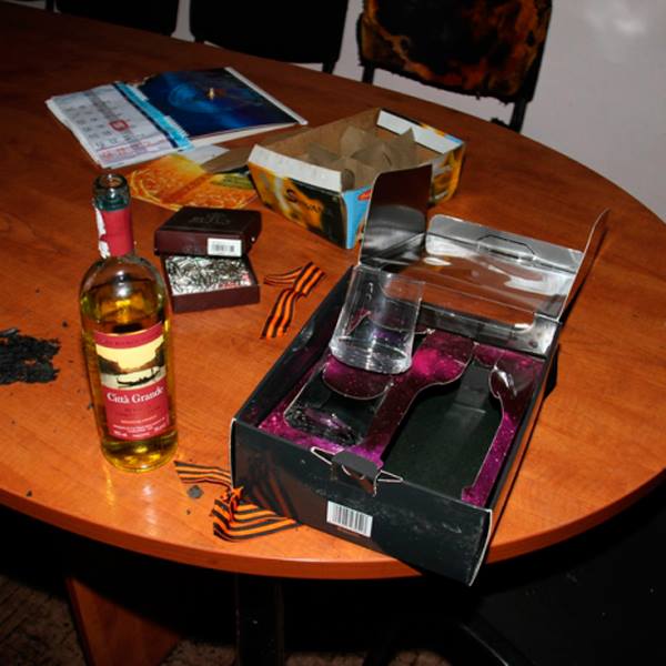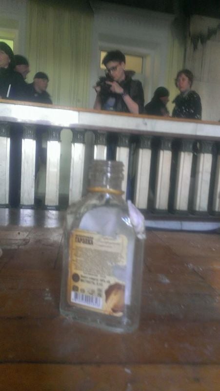 Стоит отметить, что пророссийские шовинисты превратили помещения ХОГА в откровенный свинарник - пустые бутылки из под водки, объедки, бутылки с пивом....