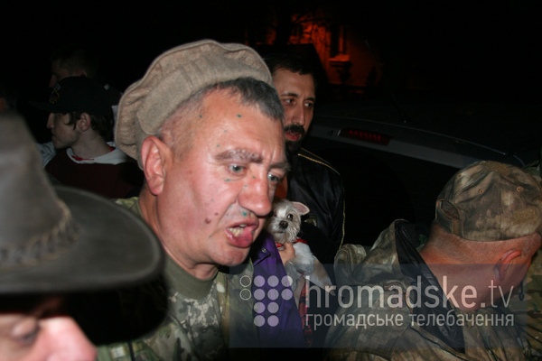 Кроме того, как сообщили очевидцы, активисты пробили шины на авто другого кандидата - Олега Царева, а Добкин ушел от митингующих без галстука.