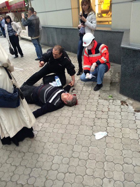 После нападения пророссийских террористов на мирный митинг в Донецке 5 человек пропали без вести, около 15 с тяжелыми травмами находятся в больницах. В том числе 2 с травмами головы в больнице Калинина, поступили также люди в челюстно-лицевое отделение (данные уточняются по количеству). Бригады медиков ходят по дворам и собирают раненых.