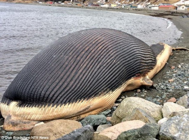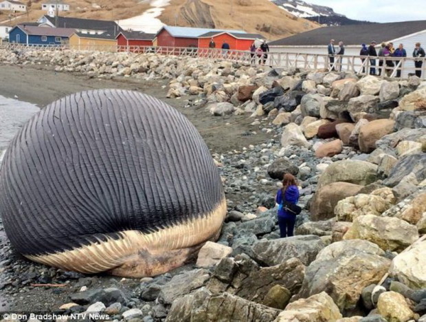 Жители небольшого прибрежного городка Траут Ривер на востоке Канады пребывают в панике. Всему виной гигантский 25-метровый синий кит, выброшенный на берег совсем недавно, пишет Daily Mail. Туша морского обитателя настолько раздулась, что кажется вот-вот лопнет, что кстати иногда случается. Ко всему прочему, разлагающийся кит испускает ужасный запах.