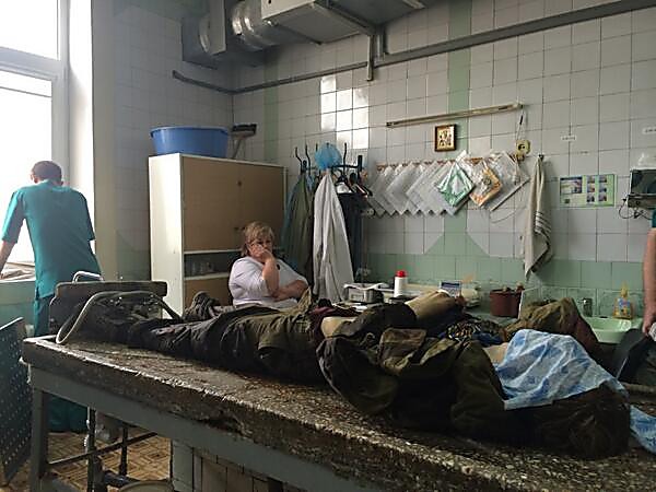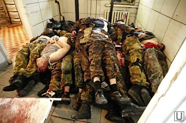 Позже заместитель начальника отдела департамента здравоохранения Донецкой облгосадминистрации Владимир Колесник рассказал журналистам, что вместе с трупами пророссийских террористов в морг привезли и снаряды.