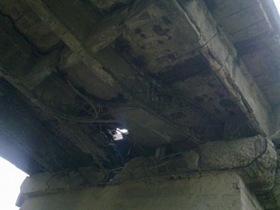 На данный момент установлено, что железнодорожное полотно деформировано, металлические конструкции моста просели, под рельсами зияет дыра.