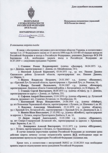 Как ни странно, данные на сепаратистов распространила ФСБ, опубликовав список граждан Украины, въезд которым на территорию РФ запрещен до 1 июля 2019 года.