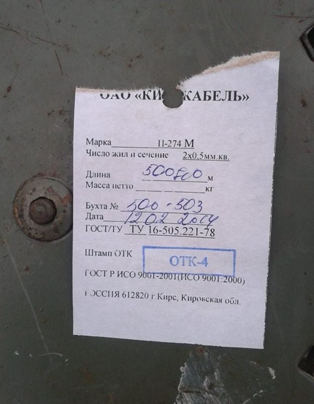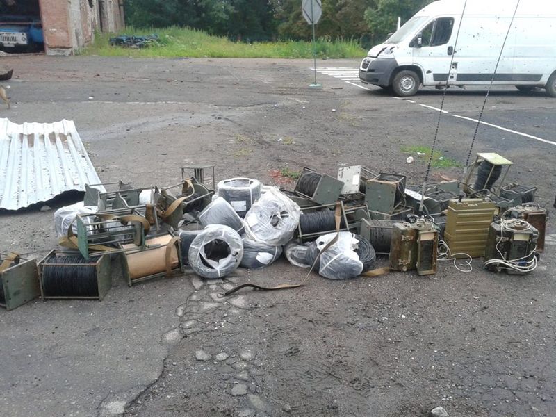 Бойцы Национальной гвардии Украины в здании славянской автошколы обнаружили склад средств связи путинских террористов. Примечательно, что на мотках и катушках с кабелями имеются бирки, свидетельствующие о том, что продукция была произведена в России в 2014 году.