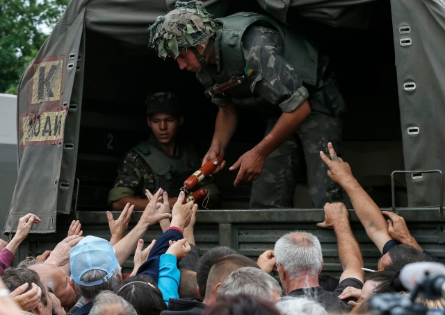 "Все выяснилось только в самом финале, когда наконец стало понятно, что обороняли они город от четырех тонн сосисок. Передумавшие умирать герои сбежали, и украинские грузовики с сосисками ворвались на главную площадь города. Торжествующие каратели раздали населению сосиски, попутно навязав ему хлеб, лекарства и другие ужасы цивилизации", – резюмирует писатель.