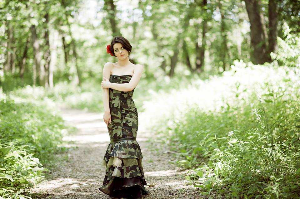 Сукню із камуфляжу спеціально для проекту виготовила українка Уляна Сидор, що зараз проживає та навчається у Чикаго і була фіналісткою того ж конкурсу.