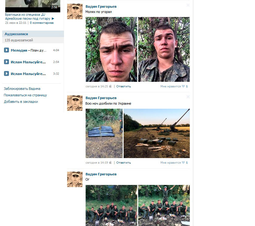 Солдат армии России Вадим Григорьев на своей странице в соцсети "ВКонтакте" опубликовал доказательства атаки территории Украины со стороны России.