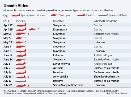 Последний из зафиксированных по состоянию на 23 июля случаев с подбитыми воздушными судами сил АТО был зафиксирован 22 июля, когда под Дмитровкой Донецкой области были сбиты два боевых самолета ВСУ.