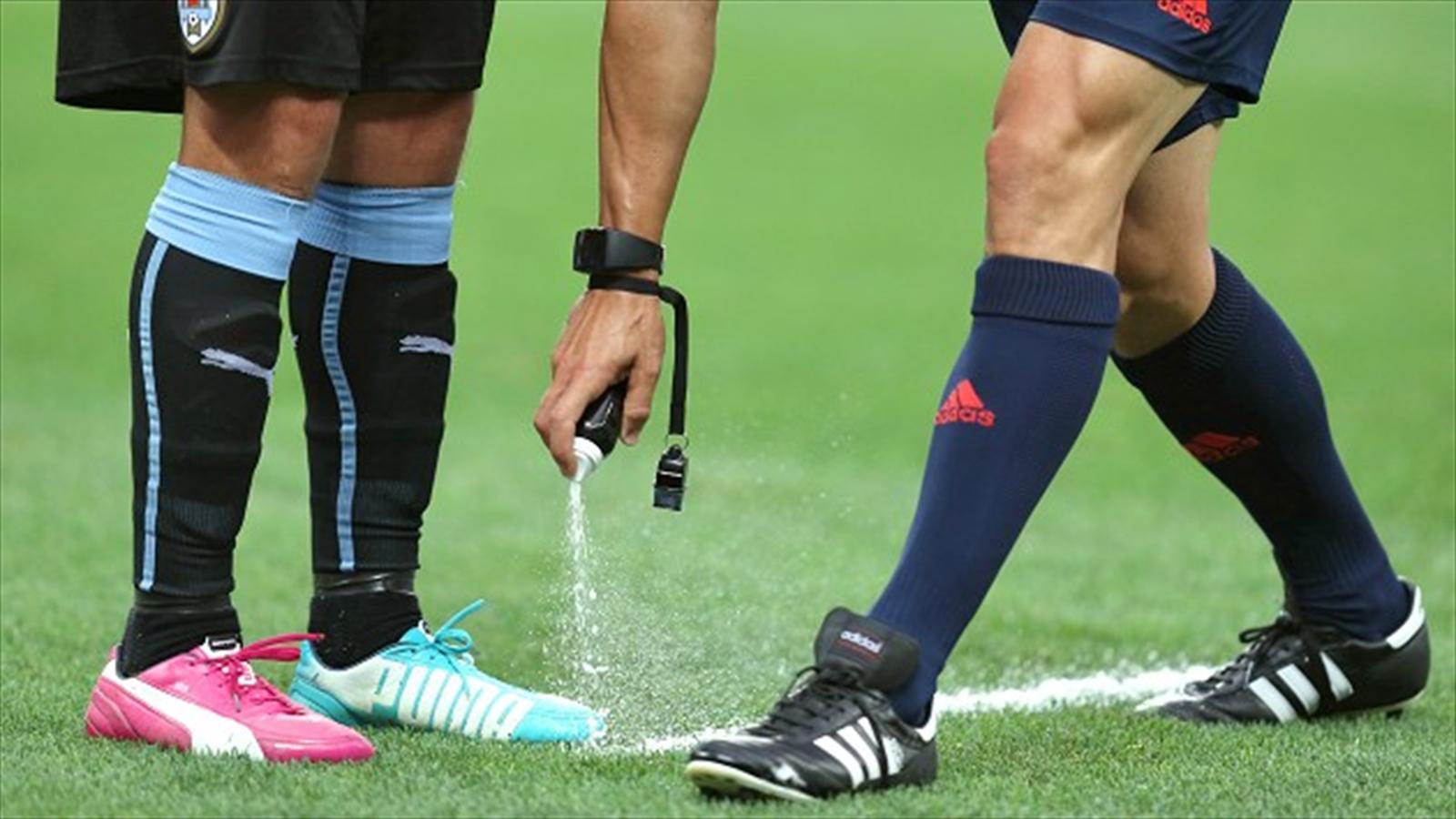 Исчезающий спрей был разработан специально к бразильскому чемпионату мира. Его цель – фиксация местоположения стенки и мяча при исполнении штрафных ударов.