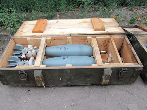 Выехавшая на место следственно-оперативная группа обнаружила замаскированные ветвями деревьев и кустарником ящики с минами 120 калибра, которые находились в полном боевом снаряжении и были готовы к применению.