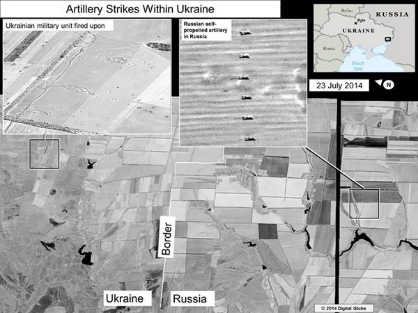 "Доказательства ведения огня российскими войсками через границу по украинским вооруженным силам и использования сепаратистами артиллерии, предоставленной Россией", - прокомментировал Пайетт опубликованные фотографии.