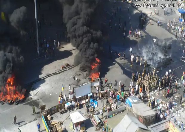 К 10:40 костров стало несколько, над Майданом огромные тучи черного дыма, - сообщает корреспондент «Левого берега».
