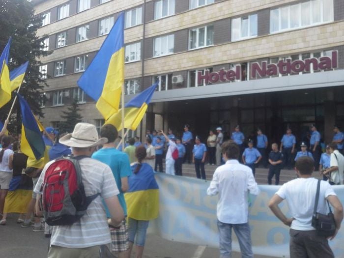 Как отмечают в сообществе, демонстранты пришли к отелю "Националь", в котором якобы живет Геннадий Кернес.