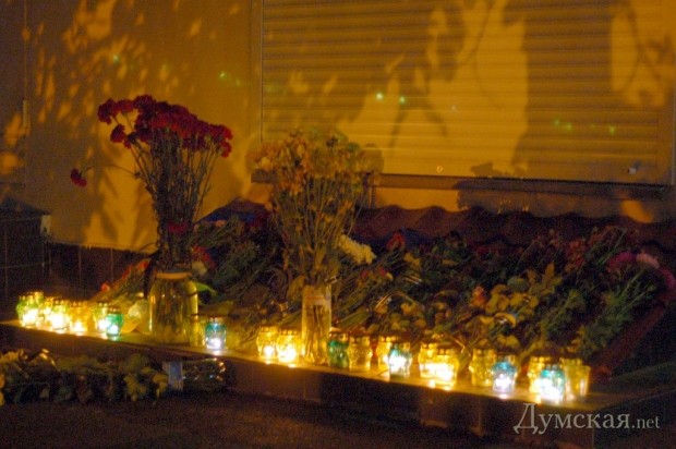 Издание отмечает, что одесситы еще вчера вечером стали приносить свечи и цветы к зданию штаба Южного регионального управления Госпогранслужбы на улице Жуковского. Город скорбит по пограничникам, сложившим головы во время трехдневного прорыва из «должанского котла» на востоке Украины.