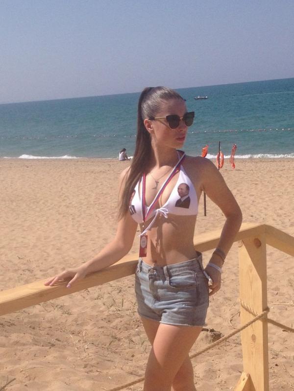Фото с владелицей патриотичного купальника было размещено на официальной странице форума «Таврида» в Twitter и привлекло к себе внимание пользователей сервиса микроблогов. На данный момент у записи уже около ста ретвитов и порядка 50 комментариев.