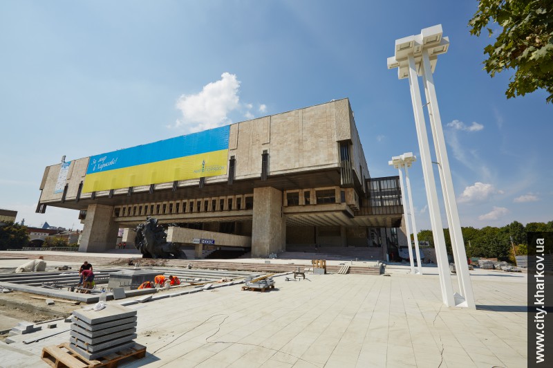 В День города, 23 августа, харьковчане увидят полностью обновленную площадь с новыми светодиодными энергосберегающими светильниками и зоной отдыха с парковыми диванами. Также перед театром появилось больше клумб, на которых высажено около 13 тыс. цветков.