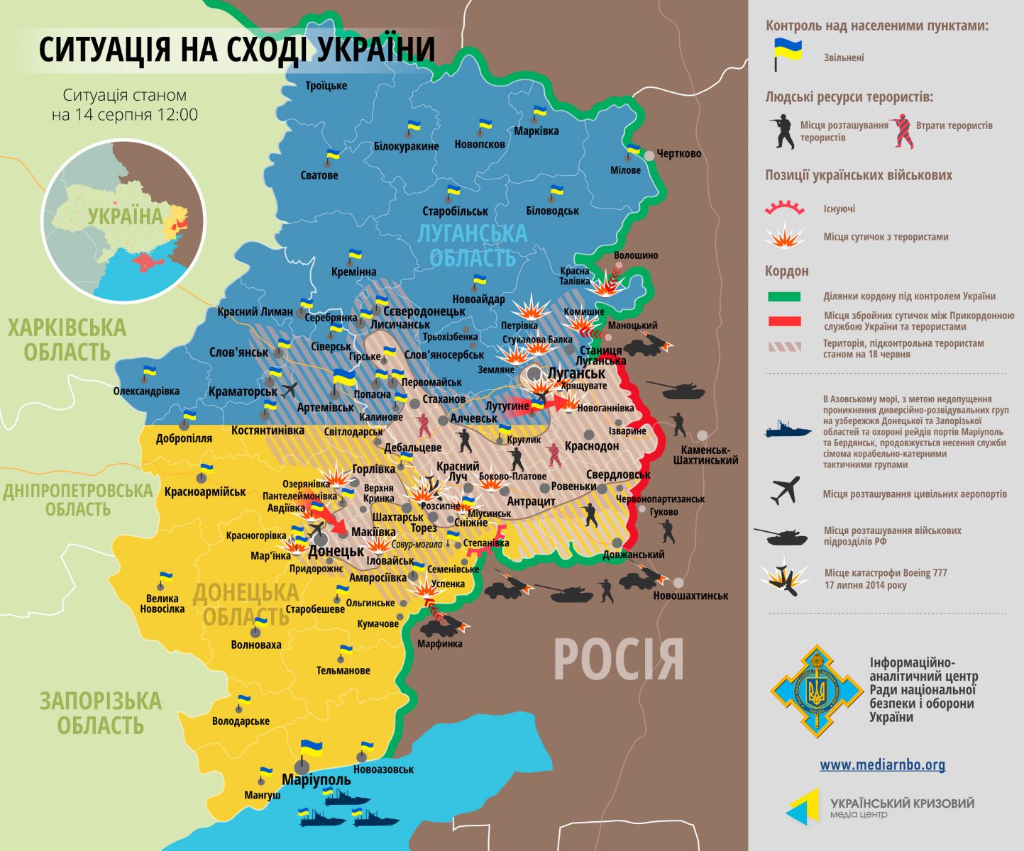 "…Наши войска вышли в район н.п.Новосветловка и Хрящеватое и закрепились здесь. По нашей информации, о полном контроле этих населенных пунктов пока говорить, к сожалению, преждевременно. Но установлен огневой контроль над участком трассы М-04, связывающей Луганск с остальной частью территории, где еще резвятся боевики из «ЛНР», а также через Краснодон и Изварино ведущей в Россию. Ранее был взят под контроль участок трассы Н21, соединяющий Донецк с Луганской областью.
