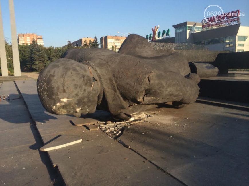 Сегодня ночью неизвестные с помощью троса снесли с постамента 8-метровый памятник Ленину, расположенный в центре города и простоявший на этом месте 27 лет, сообщает 0629.