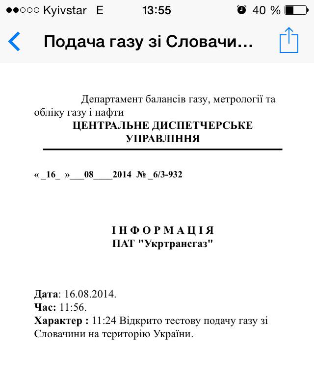 "Начались тестовые прокачки газа из Словакии в Украину по Вояны-Ужгород", - отметил А.Коболев.